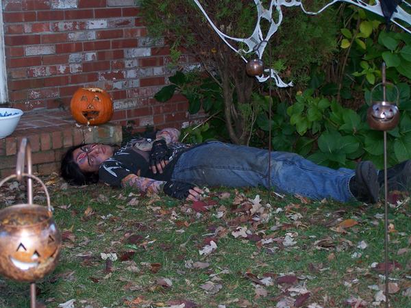 here is a picture from last year where i laid near the candy dish. after walking thru the graveyard. kids would have to reach over me to get their candy and 99% of them were to scared to do so. even had a few parents who didnt want their children to go to my house because they didnt want their kids scared.