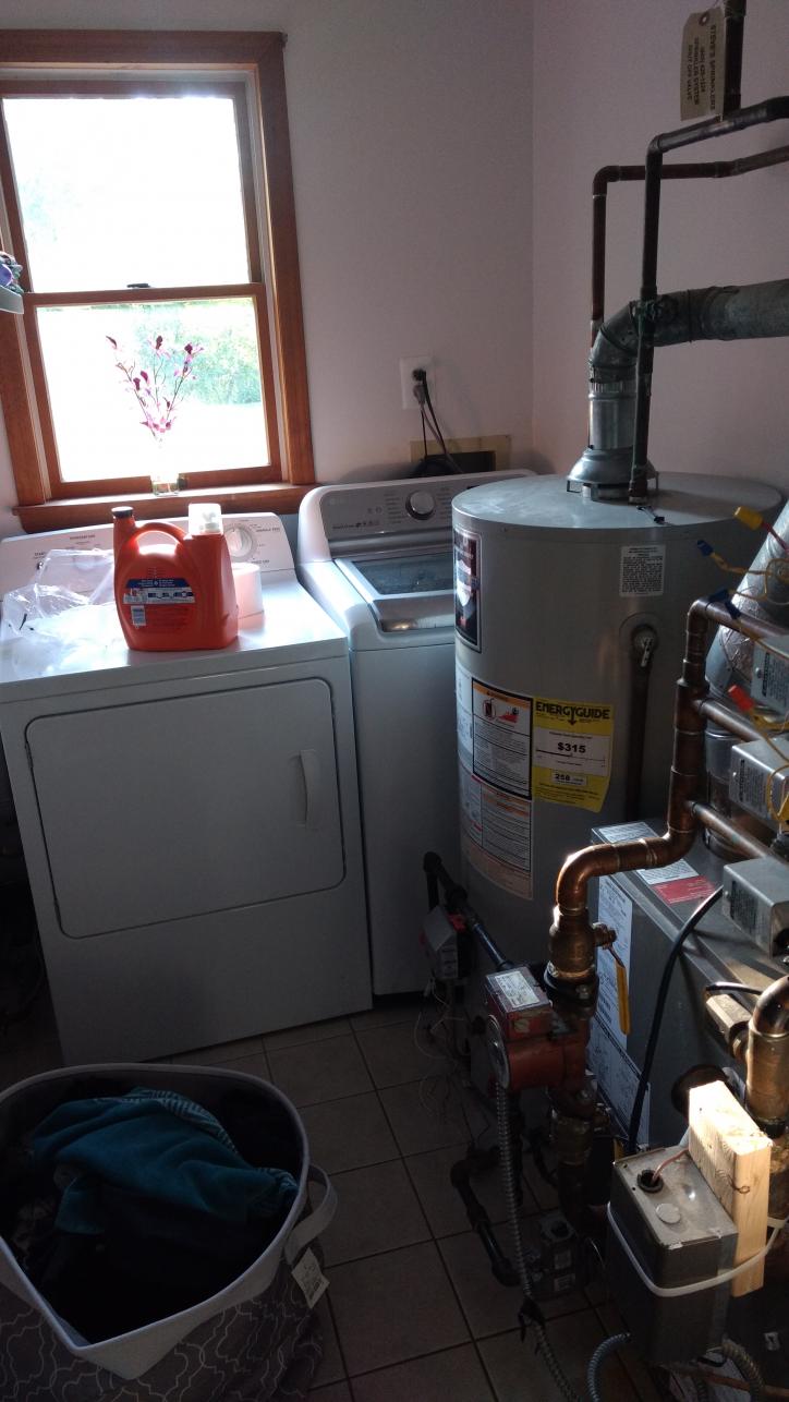 A few pictures of my utility room are attached here. Space is at a premium in there, so I'm looking into space saving options. I know there have been a few threads on wall mounted tankless hot water heaters, but I'm actually considering doing a drastic overhaul before it gets too cold and just pulling both and getting a combination tankless hot water heater and boiler. The house uses baseboard heating and it certainly makes sense to have one unit since they both, essentially, serve the same function.