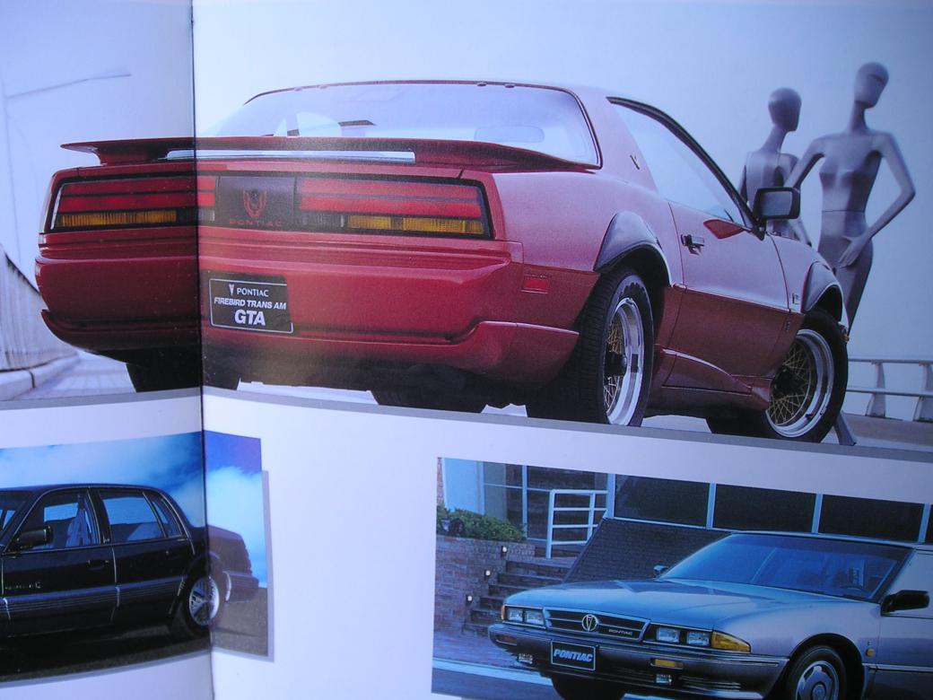 I collect everything related to 1991 Firebird and came across this brochure recently on eBay from AutoLit.com. I have the 1991 Firebird brochures from Belgium/ Germany/ France/ and Canada. This is from Japan and is written in their language. It lists all the GM cars that were exported to Japan to include Cadillac-Buick-Chevrolet and Pontiac. If you notice in the pictures, there are several changes made to the Camaro and Firebird that were not made to those models sold in Europe. The change in the Camaro are the black SIDE VIEW mirrors. The Trans Am also has the same mirrors, but check out the picture of the GTA. It has the normal Firebird tail lights (not the GTA style) but the biggest surprise was the addition of BLACK FENDER FLARES. I have never seen these mods on any pictures of these cars.
