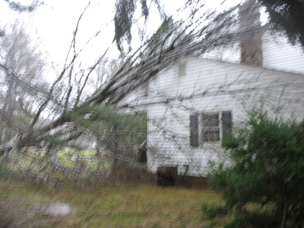 there are a bunch of trees down in town here, and a pretty good sized one on a house.