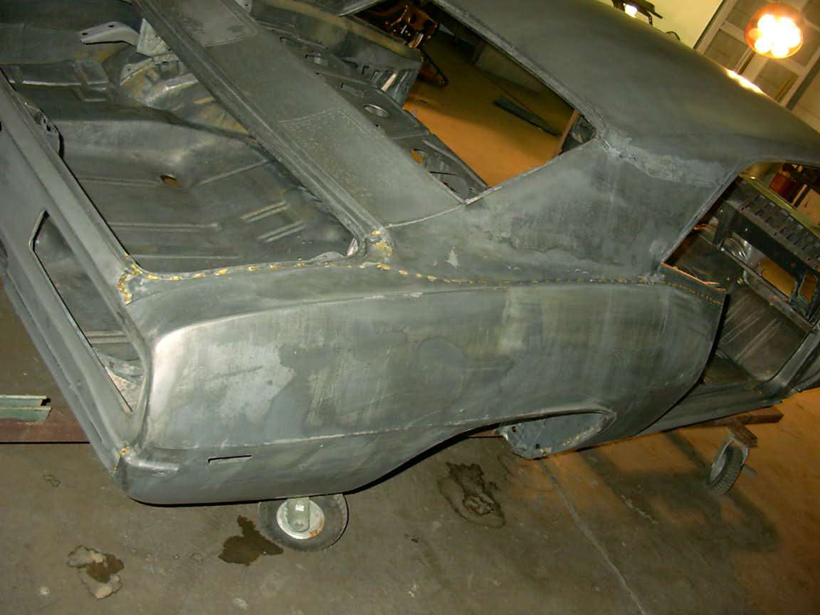 I had plenty of time and no cash so I did it messy style in my garage. Looking back I should have paid any of the numerous media blasting places the $600-$1000 to blast and epoxy the car. I spent countless hours and probably $150 on stripper and sanding disks and then another $200 on epoxy. Not to mention almost 2 months under the car stripping the undercoat off! - That I will never do again.
