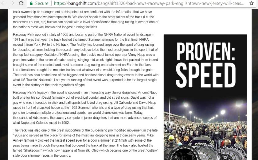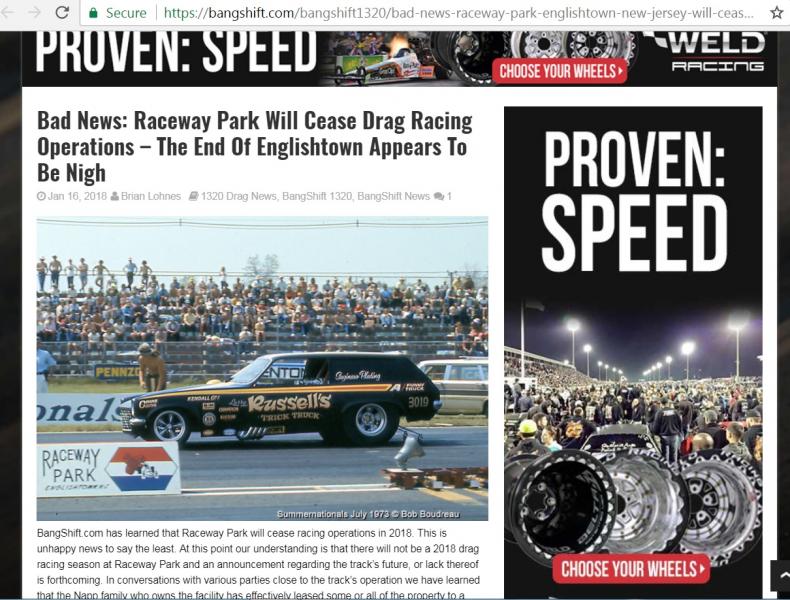 It's official. Englishtown will no longer have drag racing. Sad. This sucks.