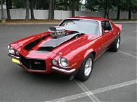 1973 RS Z28: 401ci Dart Little M, Littlefield 8-71 supercharger @14lbs boost, Callies Magnum crankshaft, Lunati Pro-Mod rods, JE pistons, 7.8:1 compression, AFR 227 Comp heads, T&D 1.6 shaft rockers. Reed solid FT cam (240/250@.050, .523/.542 lift, 112 LSA), QFT 750 carbs, Lemons headers, Mezier mechanical water pump, Tremec TKO-500 5-speed, Moser 12 bolt, 33 spline axles & 3.42 gears.