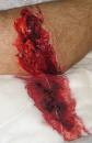 Na...that's a shark bite wound...Mantis' aren't crazy deadly or anything, but they will bite if you mess with them and also their legs are sharp/spiny so that adds to the " oh, shiit,'' feeling.