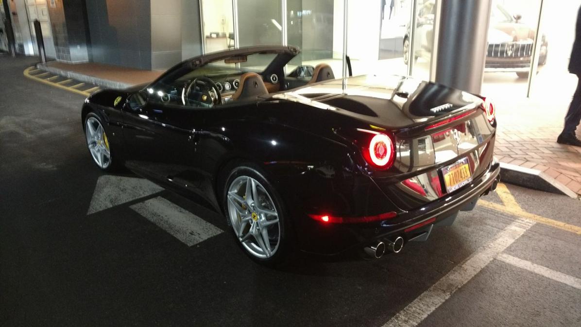 First, my impression of the car: I drove a California T convertible (of course). The ergonomics of this car are PERFECT. Everything is perfectly placed on the steering wheel, and the armrests for the door and console are exactly where I would place them if I was building a car. The trans was very smooth off idle for a dual clutch (parking brake resembles a window switch oddly). I felt perfectly at home driving it, at high speeds on the straightaway and ripping around the exit ramps. Car felt amazingly planted, and the torque response from the turbos was better than anticipated. Having never really driven a high revving car like that before, I did tap the rev limiter on the 2-3 shift since it pulls so hard close to redline it seems premature. I would say that windows down, wind noise is on par with my Z which was a bit surprising. The car had 96 miles on it so you could still smell the leather with the top down. Going over bumps felt like nothing, it was solid as a rock.