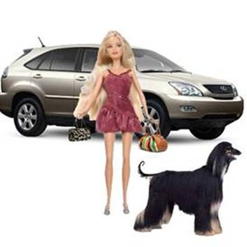 This yuppie Barbie comes with your choice of BMW convertible or Hummer H2. Included are her own Starbucks cup, credit card and country club membership. Also available for this set are Shallow Ken and Private School Skipper. You won't be able to afford any of them.