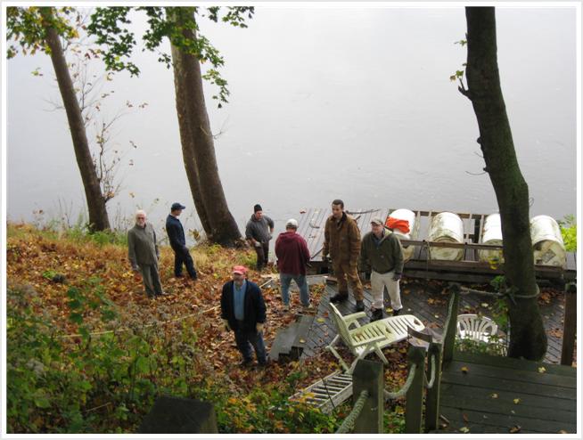Today was our annual dock day along the Delaware River where we get a tow truck and owners come out to help winch each dock up the river bank. The winch does most of the work but quite a few properties have a nice combination of trees and rocks that we have to help the docks over or around. I think it takes a week for my back to recover from lifting the docks and usually the steps that get pulled up as well! I think we pulled up 14 docks today. You can see how steep the river bank is at my cousin's house where I keep my boat. I think it's about 75-80 steps up is where we pull the docks in case the river comes up over the winter and if there is any ice.