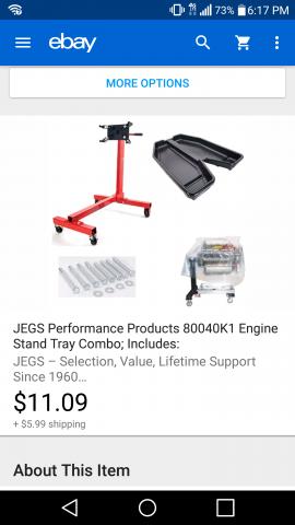Jegs $17 engine stand with drip tray..