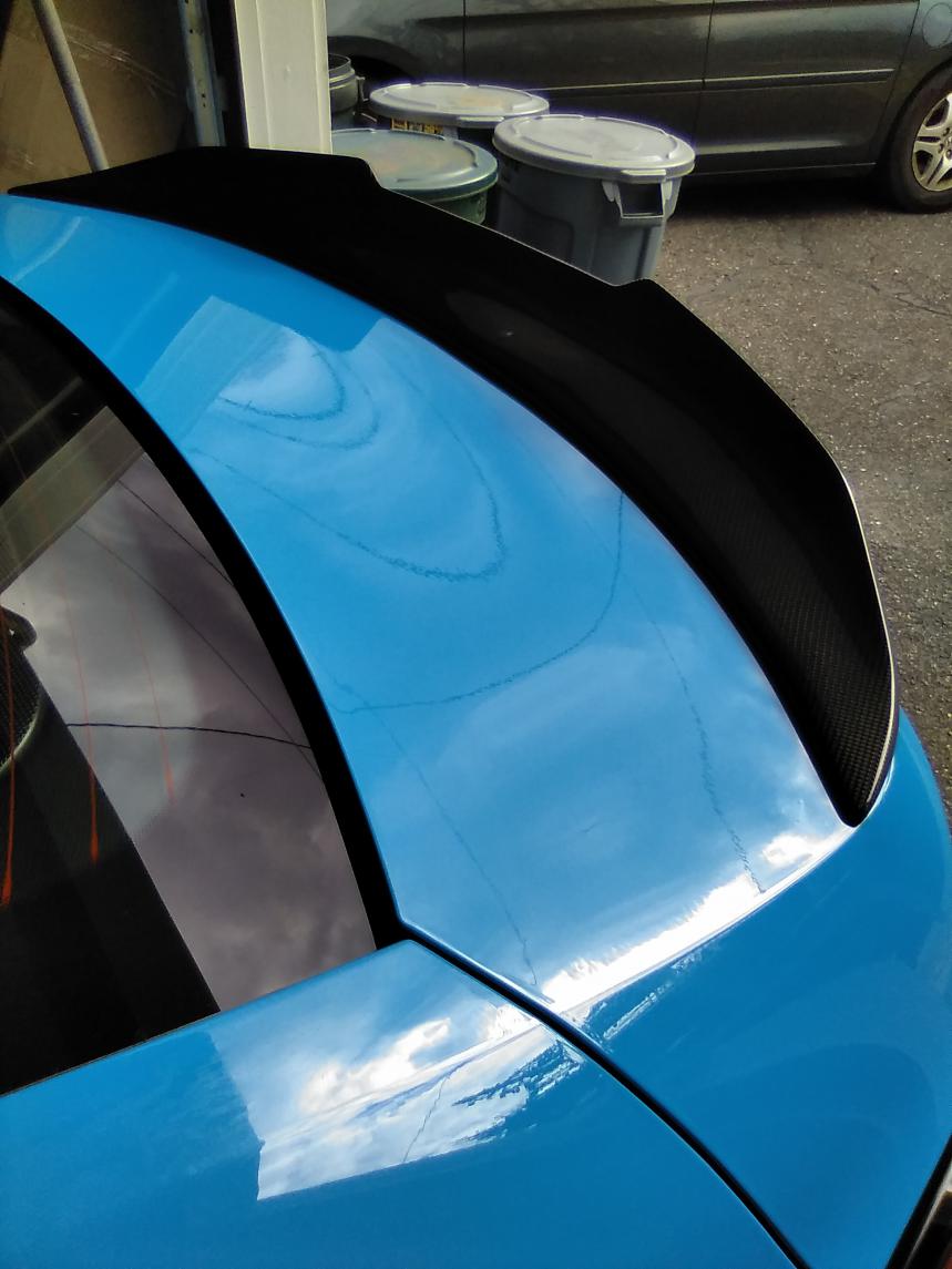 I added an aftermarket carbon fiber rear spoiler, smaller than the oem one.