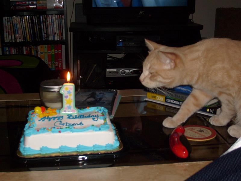 There's his Bday cake....and a few pics after he decided to knock a book and some papers over.