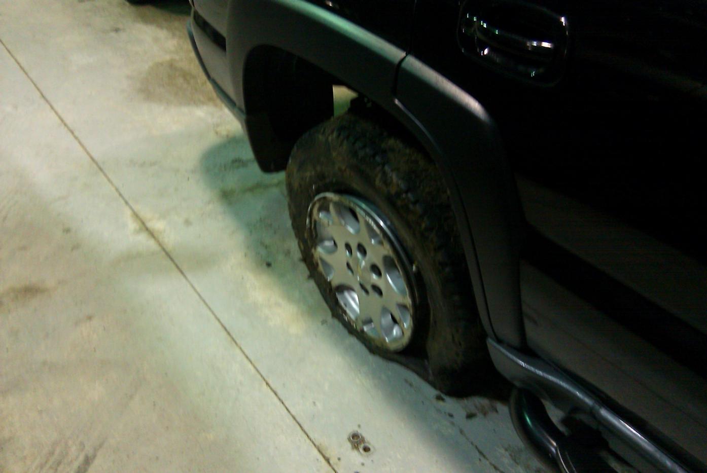 Driving norh on the PIP last night around 6pm in the distance I noticed 2 cars pulled off to the side of the parkway with their hazzards on. A second later BOOM it felt like the rear end was ripped out of my truck. It seems that I hit a chunk of highway at 60mph that the plows ripped up the night before and left there for us. Luckaly no damage occured to anything else on my truck but the rim and tire. I was going to swap out the tire but it was pretty muddy, no place to support the jack, my fathers dealership was only 4 miles away so I had it towed over there and used the lift to swap out the spare. As I was sitting stranded on the PIP another car pulled up behind me with the same issue, Seems all 4 of us all had our passenger rear tire blown out. How is it that nobodys front tire was dammaged?