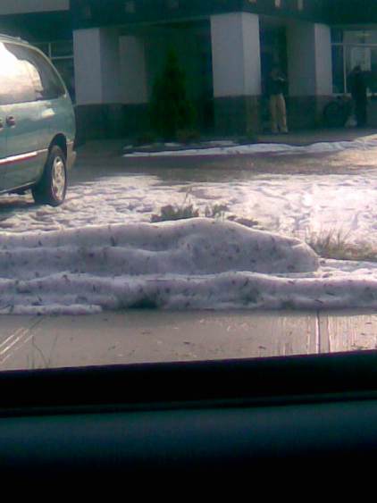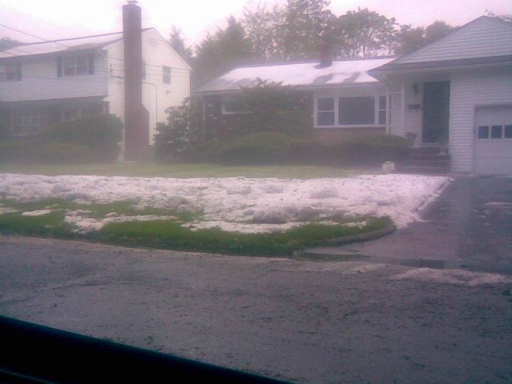 i was at work listening to towns like westwood, washington twsp, and emerson go nuts late this afternoon with this little area of T-storms.... they produced 3-4inches of ice/hail on the parkway near exit 168 as well as those 3 towns. they had the snow plows out, plus massive flooding and wires down. i hada take a ride wen i got out of work around 6 and snapped some pics with my phone, almost got stuck in a snow pile (IN JUNE!!!) and the TA is covered in mud now