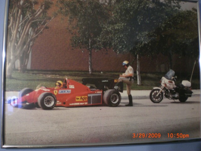 Since there seem to be a lot of F1 fans here I thought that you might like this pic. This was a F1 car that was loaned to us from Ferrari factory. I use to work for Ferrari North America. We had an office in PA and in CA. This pic was taken outside of our CA offfice. The car didnt run. From what I remember, the police officer was a friend of one of the workers there and they just pushed the car outside and took the pic. Sorry about the crappy quality but it is a poster and I had to take a pic of it. This was taken sometime in the late 80's when I worked for them.