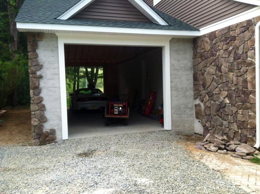 Stone will wrap around from the existing house to front of garage and around the left corner. Garage doors will be 8'9x10' so the worktruck fits in.........