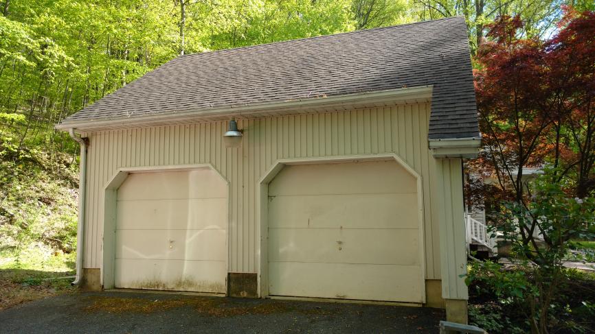 It's on 4 acres but most of it goes up a fairly steep hill in Liberty Twp (Great Meadows). Garage is attached to the laundry room, not detached.