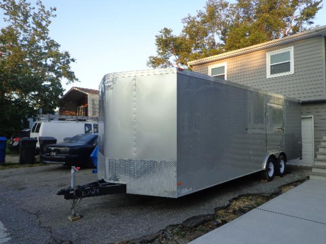 with everything going on and sometimes not using my brain, i have been paying a crazy storage bill since the storm, almost 600 a month, well its getting a bit much, so with the help of my dad i was able to get a 2012 gmc crew cab k2500 hd pick up and a brand new 24 foot enclosed car trailer he bought straight up so i just have a small payment to him until the house is completely done then i will try and pay him back in full, Hecht trailers took care of me with the price and dad paid for it, this is the 4th trailer over the years i have gotten from them,