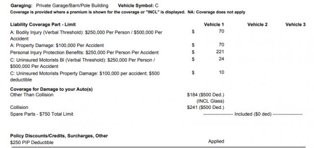 Coverage attached, pay just under $800 but again it's because of my record as much as age I assume.