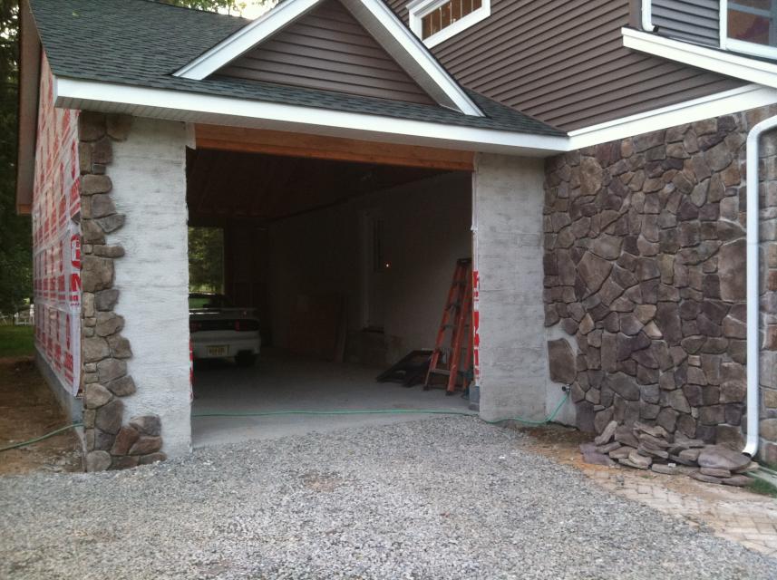 Stone will wrap around from the existing house to front of garage and around the left corner. Garage doors will be 8'9x10' so the worktruck fits in.........